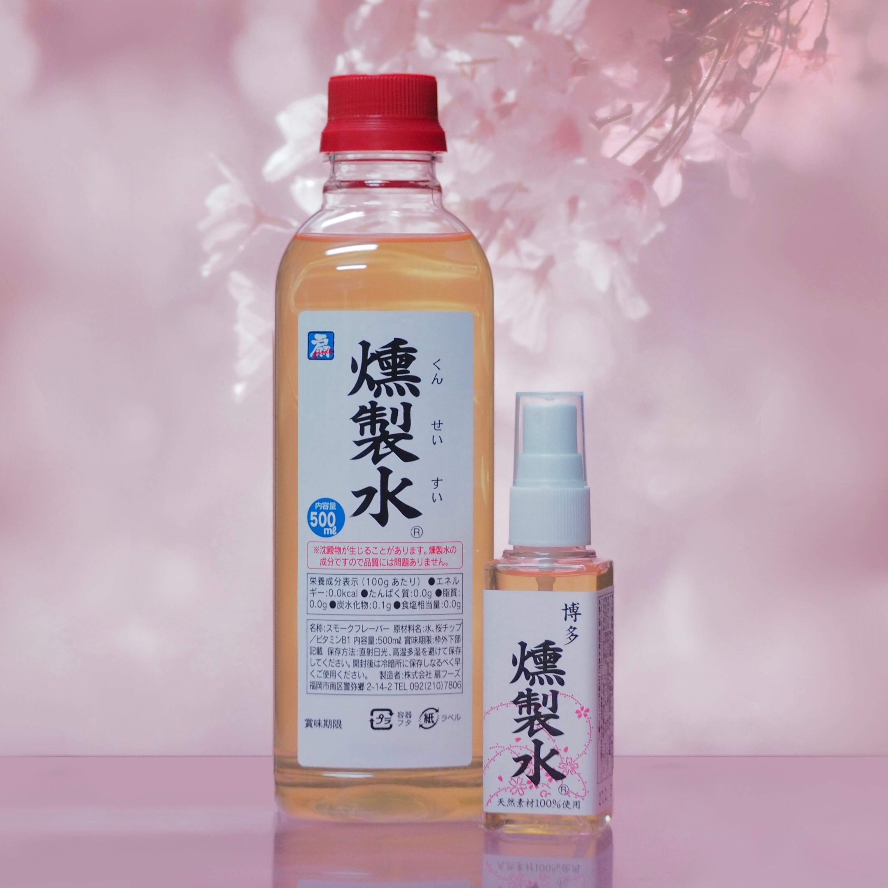 天然の山桜を焚いて出た煙を自社製特殊撹拌装置によりナノ化された水の中を通すことで、